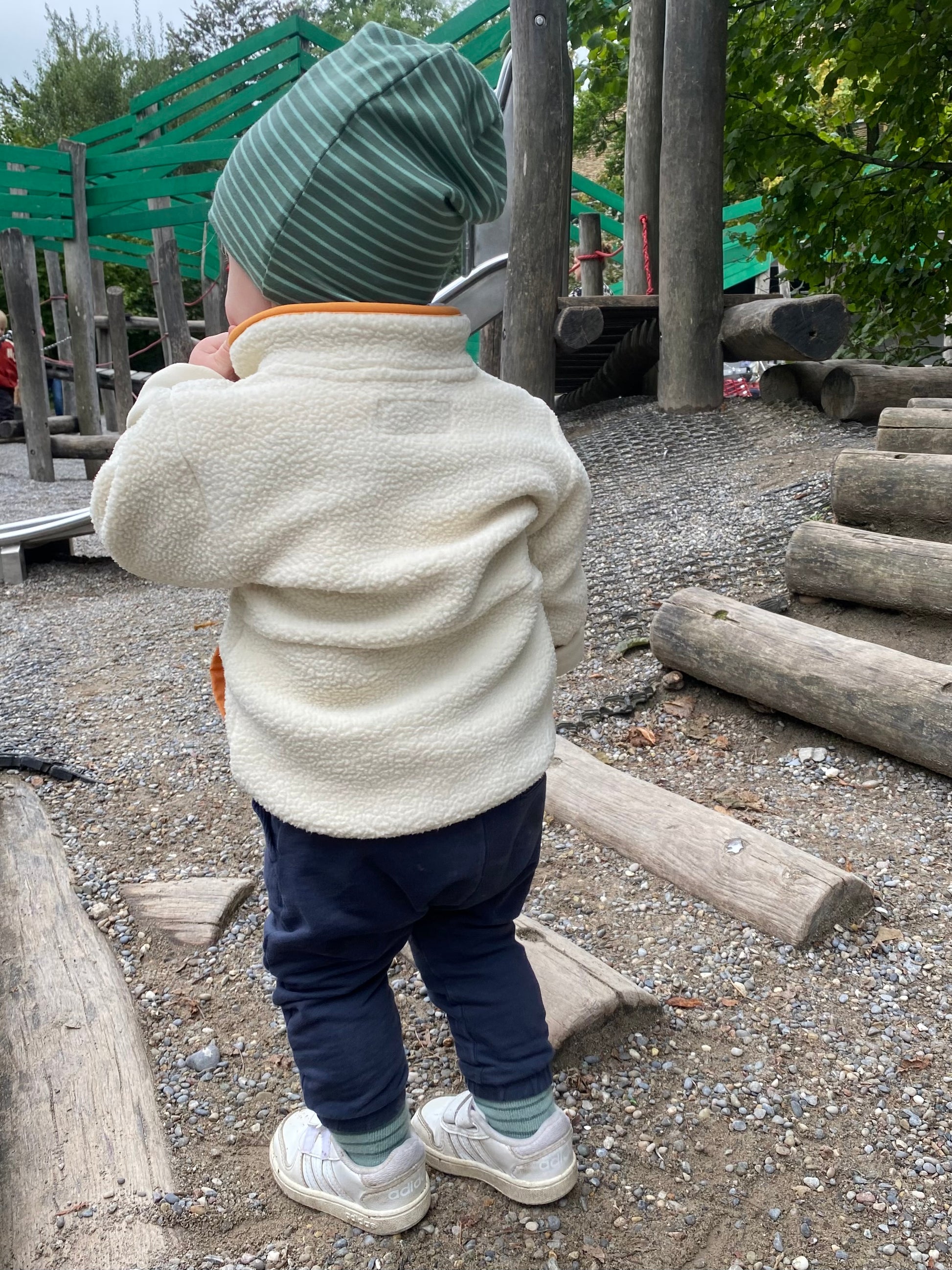 Suchen Sie eine einfache Schicht für kühlere Tage? Diese gemütliche Teddyjacke passt perfekt unter eine ungefütterte Regenjacke – dank des kapuzenlosen Designs für bequemen Sitz. Stylisch und bequem.